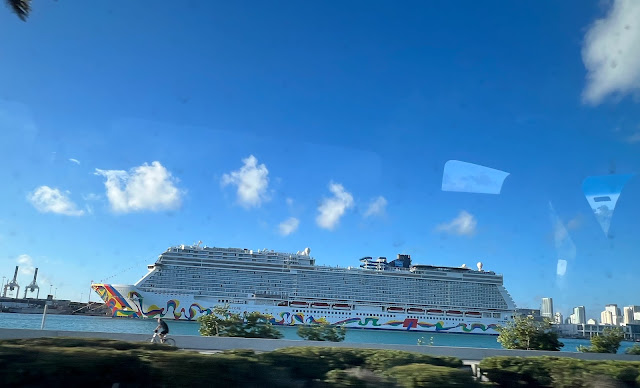 ရာသီဥတုကောင်းနေလို့ Snorkeling $၆၅၊ Watching dolphins $၇၀ လုပ်မလားမေးတော့ အဖေတို့က မလုပ်ချင်ဘူး။ Trolley $ ၅၆ ဆိုတော့ မစီးဘူးတဲ့။ ဒီတော့ လမ်းလျှောက်ပြီး ပတ်ကြည့်ကြတာပေါ့။ နေ့လည် ၁၁ နာရီရောက်ပြီး ညနေ ၄ နာရီမှာ ပြန်ထွက်မယ်တဲ့။ ကိုယ်တို့လိုပဲ ဘာ activities မှမလုပ်တဲ့ ၃ မိသားစုတွေ့တယ်။ တိုးဂိုက်ညွှန်းတဲ့ ဒူမွန်လမ်းမှာ စားသောက်ဆိုင်တွေ အများကြီးပဲ။ ကျူးဘားဆန်းဒွတ်၊ အမဲသားနှပ်မှာတာ အမဲသားနှပ်က ကောင်းပေမဲ့ ဆန်ကကျောက်ခဲစားရသလိုပဲမာတယ်။ ၂၀၁၁ ဖို့ဝိန်းမှာ ကိုယ်စားဖူးတဲ့ ကျူးဘားဆန်းဒွတ်က အတော်ကောင်းတယ်။ ဆန်းဒွတ်ကိုပြန်သယ် CVS ဝင်ပြီး ရေဝယ်။ Electric scoter၊ car၊ bike ငှားတဲ့နေရာတွေ အများကြီးပဲ။ Southernmost Point Continental USA အတုံးလေးနဲ့ ဓာတ်ပုံရိုက်ဖို့ နာရီဝက်လောက် တန်းစီရတယ်။ အုန်းသီးတလုံး ဘယ်လောက်လဲမေးကြည့်တော့ ၇ ကျပ်တဲ့။ အမလေး စျေးကြီးလိုက်တာ သစ်ခွပင်ထဲ အုန်းသီးခွံထည့်ဖို့ ကွင်းမှာဝယ်တာ ၃ ကျပ်ပဲပေးရတယ်။ မိုင်ယာမီက sales tax 9 % နယူးယောက်က 8.875% နယူးယောက်ထက် စျေးကြီးတယ်။ အဲ့ဒါကြောင့် မိုင်ယာမီကို ရောက်ဖူးတဲ့သူတိုင်း စျေးကြီးတာလို့ ပြောကြတယ်။ သဘေင်္ာပင်၊ မန်ကျည်းပင်တွေ့လို့ ပျော်ကြသေးတယ်။ သစ်ပင်ပေါ်မှာ ဖွတ်တကောင် အဖေပြတာ မမြင်လို့ ဖုန်းနဲ့ zoom ဆွဲကြည့်တော့မှသိတယ်။ ကိုယ်တို့တွေ ကြည့်နေလို့ ဖြတ်သွားတဲ့သူတွေကလည်းဝိုင်းကြည့်။ ပင်လယ်ကူးသဘေင်္ာကြီးပေါ် လူတွေတက်တာကို ကြည့်တယ်။ ပင်လယ်ကူးသဘေင်္ာကြီးက အကြီးကြီးပဲ။ မိုင်ယာမီမှာ ၈ စီးတွေ့ခဲ့တယ်။ ကမ်းခြေတလျှောက်ပတ်ကြည့်။